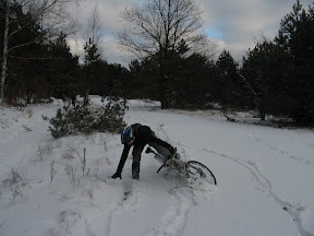 Wypad do KampinosuWpierw pod rurę, stamtąd od razu w teren ... gdyż jazdę po takim śniegu traktuje jako terenową (bo w sumie nie wiadomo czy jechaliśmy po chodniku, trawie, czy ścieżce).